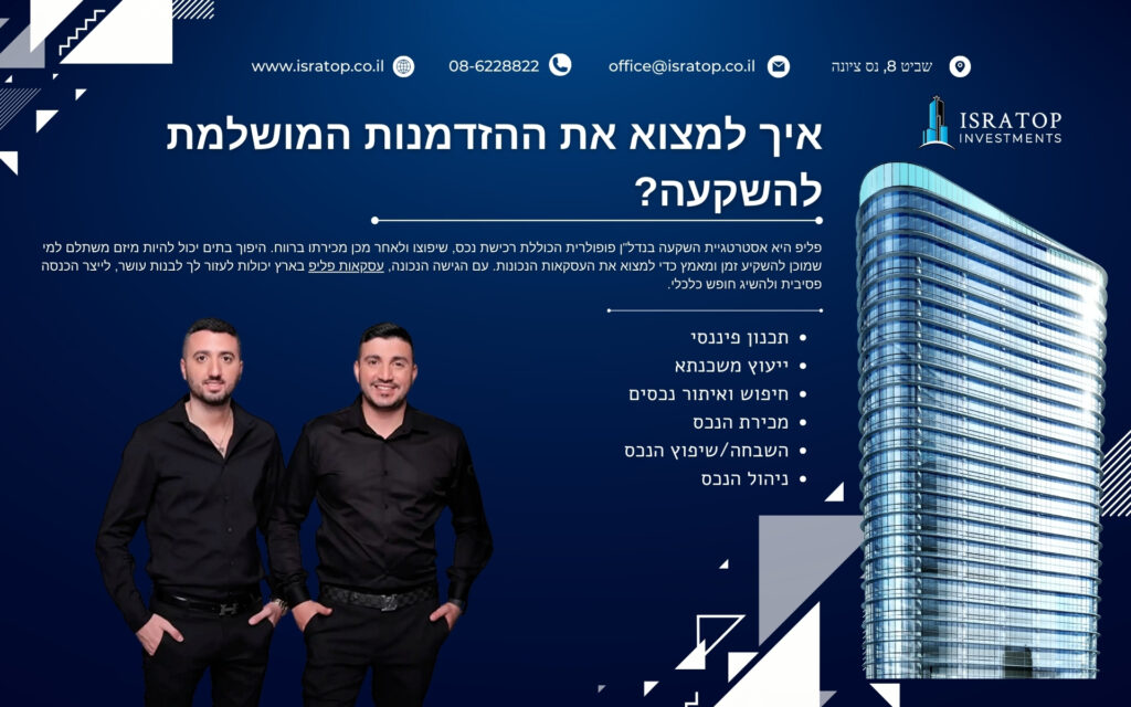 פליפ היא אסטרטגיית השקעה בנדל"ן פופולרית הכוללת רכישת נכס, שיפוצו ולאחר מכן מכירתו ברווח. היפוך בתים יכול להיות מיזם משתלם למי שמוכן להשקיע זמן ומאמץ כדי למצוא את העסקאות הנכונות. עם הגישה הנכונה, עסקאות פליפ בארץ יכולות לעזור לך לבנות עושר, לייצר הכנסה פסיבית ולהשיג חופש כלכלי.